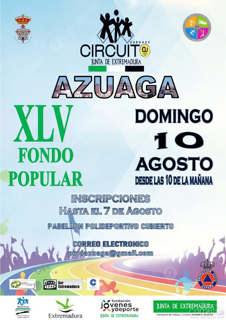 El Ayuntamiento de Azuaga y la Escuela Municipal de Deportes, con el patrocinio de la Junta de Extremadura y enmarcado dentro del Circuito de la Junta, organizan el VI Fondo Popular de Azuaga, una cita deportiva abierta a todos los públicos que tendrá lugar el domingo 10 de agosto a partir de las 10:00 horas en la pista de atletismo municipal "Ana Pulgarín", situada en el Estadio Deportivo.