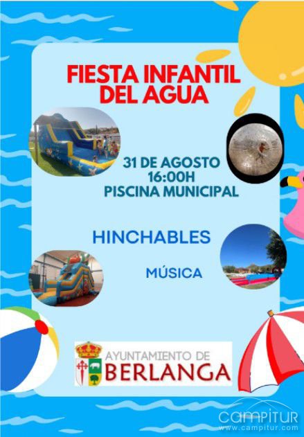 El Ayuntamiento de Berlanga ha organizado para el próximo domingo 31 de agosto una jornada muy especial dedicada a los más pequeños: la Fiesta Infantil del Agua, que tendrá lugar en la piscina municipal a partir de las 16:00 horas.