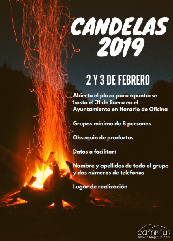 Desde el Ayuntamiento de Campillo de Llerena informan de la apertura del plazo para apuntarse a las Candelas 2019, en concreto, todas aquellas personas que vayan a prender una, tendrán que inscribirse previamente en el Ayuntamiento, en horario de oficina.